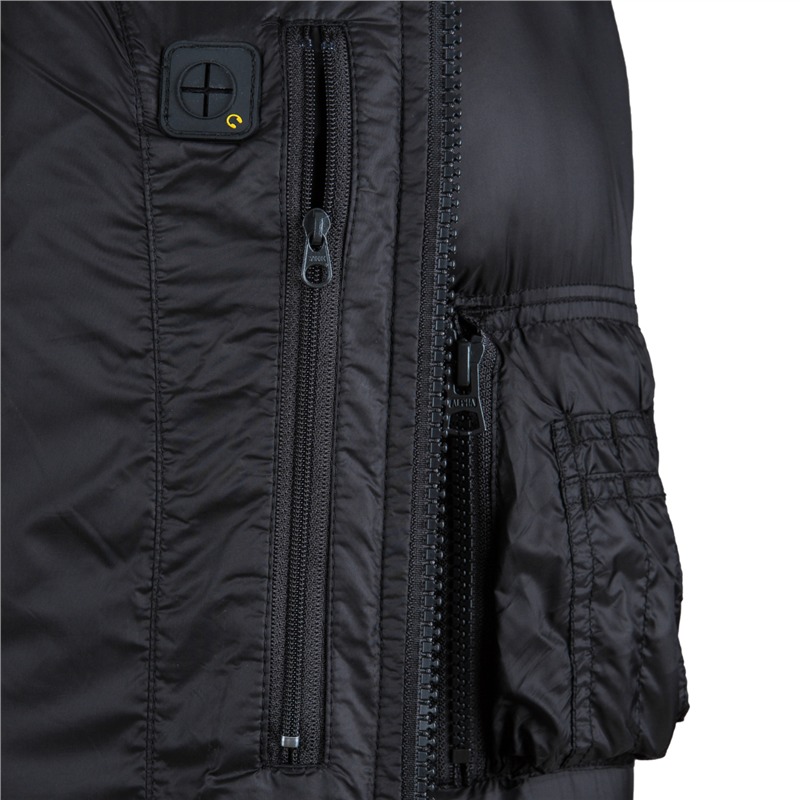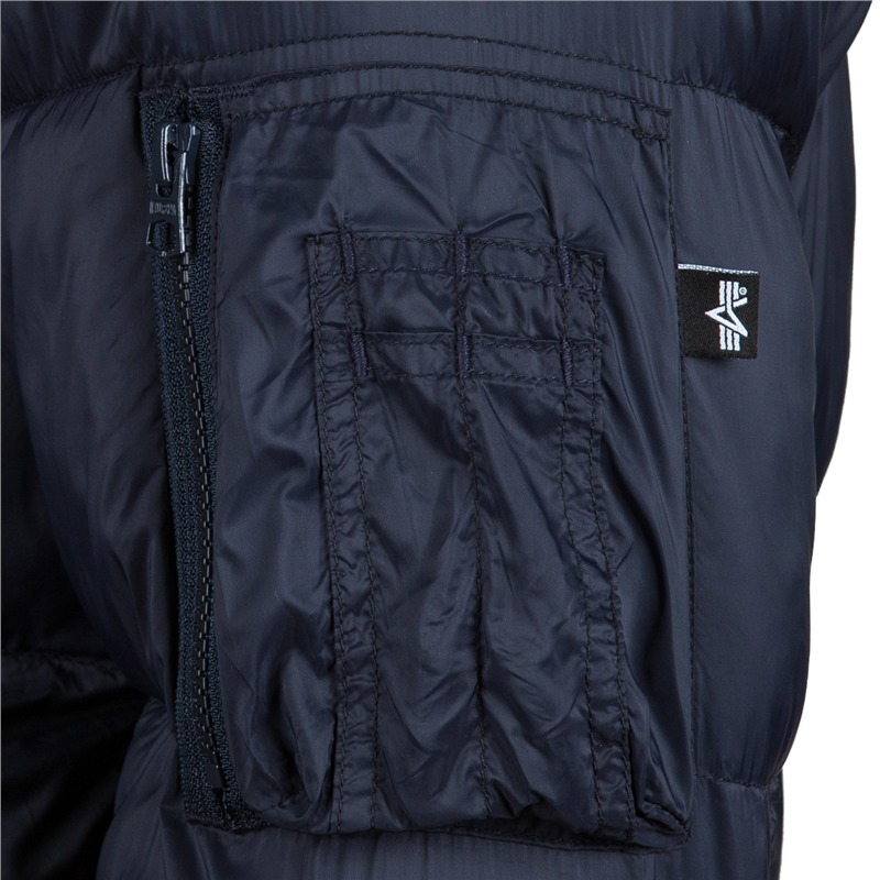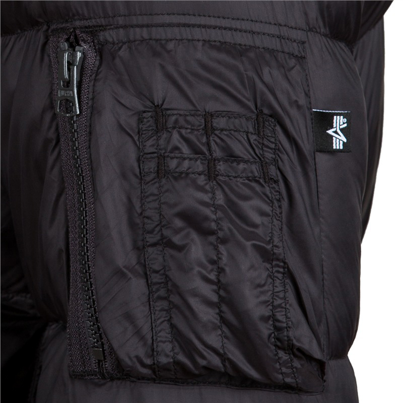 Staying warm has never looked so cool. The Alpha MA-1 Echo Flight Jacket is a heavyweight bomber jacket designed to keep you warm and cozy all winter long. The black jacket is a down-alternative bomber made with nylon and eco-friendly DuPont Sorona fill. The collar, cuffs, and waistband are made of soft knit. Jacket is water resistant and features Alpha’s signature zippered utility pocket on the sleeve with the red Remove Before Flight tag.
