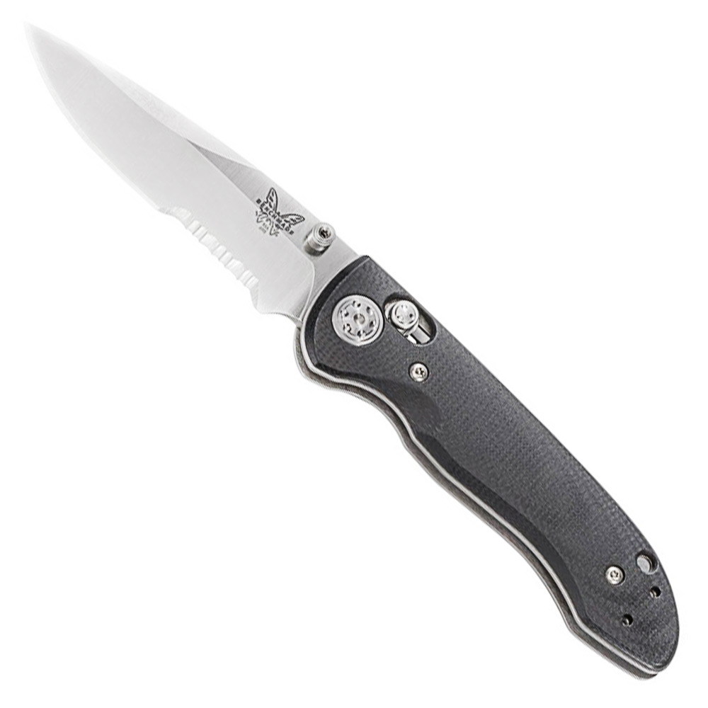 Any true knife collector knows the importance of having a blade for every occasion. The Benchmade Foray is a classy gentleman's knife with all the function of a standard everyday carry blade. The partially serrated, combo edge blade has a satin finish and versatile drop point shape. Once unfolded, the blade locks into place with the AXIS lock bar mechanism. The contoured, black G10 handle is large enough to handle comfortable and has a built-in deep-carry pocket clip and lanyard hole.