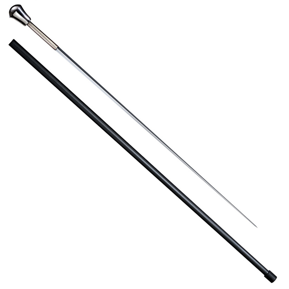 Cold Steel have been intrigued with the potential of sword canes ever since Major Morris Wright used one to grievously injure Jim Bowie in their famous fight on the Vidalia Sand Bar so many years ago. There are few weapons that can be put into action faster than a sword cane. Just give the handle a firm tug and the blade will literally leap into your hand! This elegant sword cane is similar in appearance to the Cold Steel City Stick and comes with a removable 6160 Aluminum head so that it can be engraved and personalized if you so desire. It features a fiberglass carbon fiber composite shaft that's virtually unbreakable and can be used as a weak hand parrying tool or an emergency bludgeon. The blade has a tapered square cross section with a wickedly sharp point.