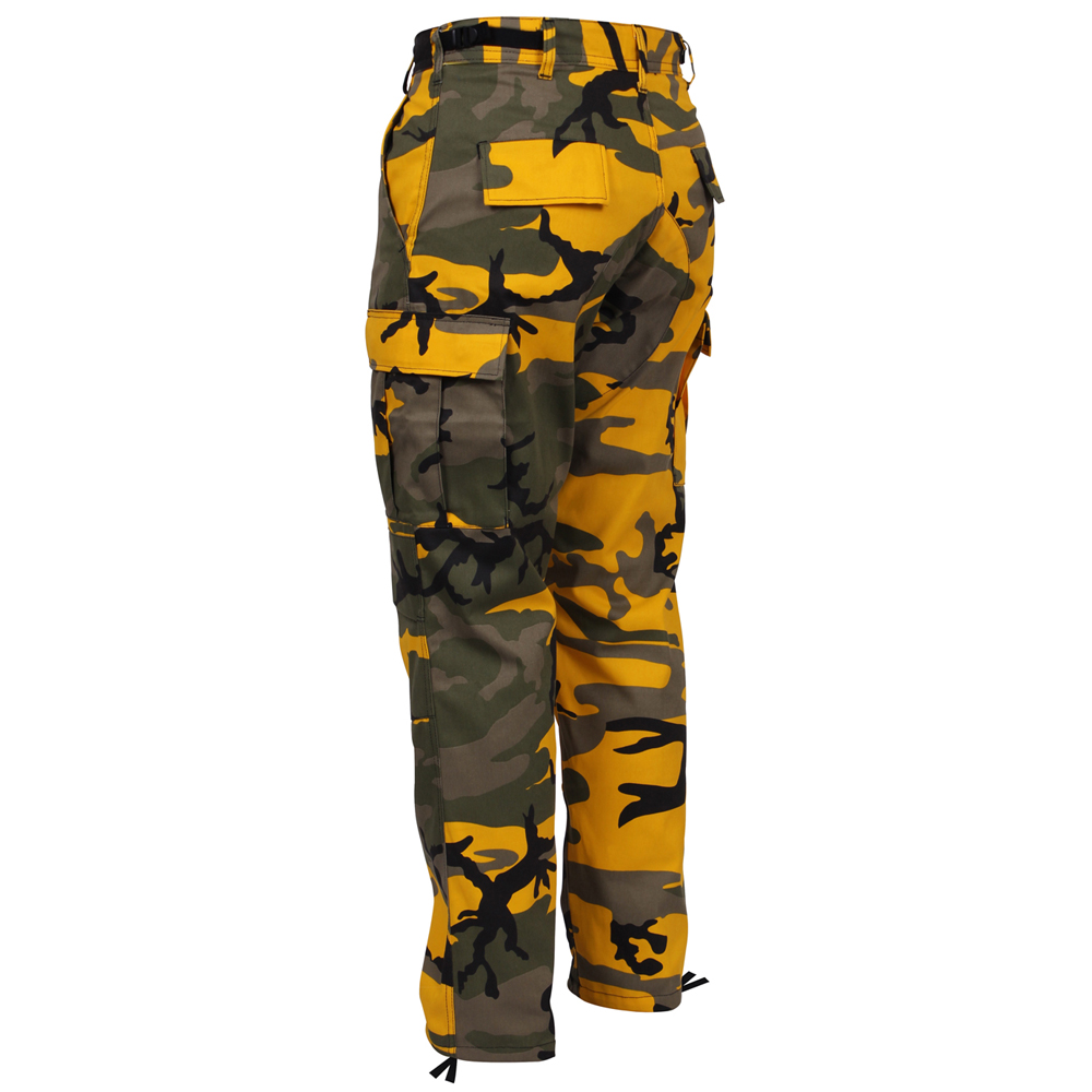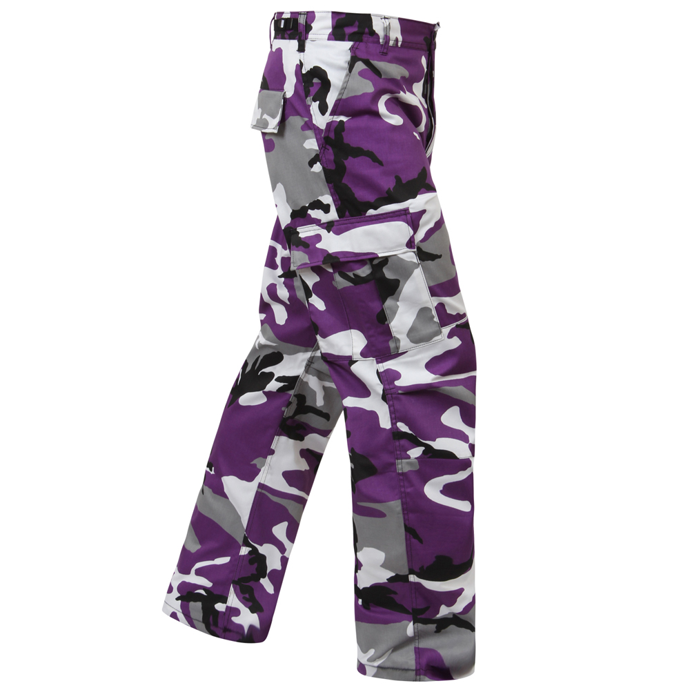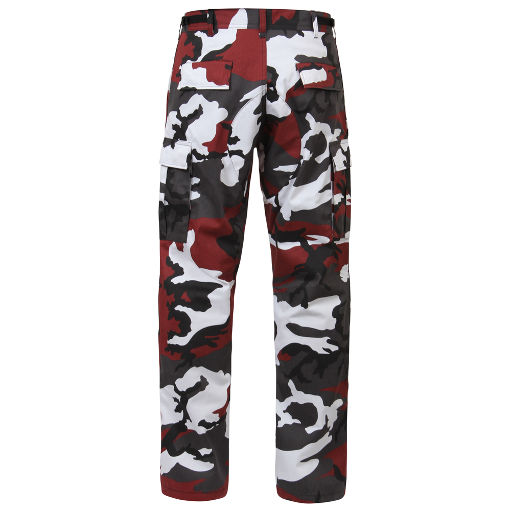 Color Camo Tactical BDU Pants, which are available in a variety of camouflage patterns including ultraviolet camo, red camo, and sky blue camo. In the street or the field, woven Color Camo BDU Pants are designed to withstand the wear and tear with double stitched seams and long-lasting 55% cotton / 45% polyester material. The camouflage pants featurecombat-tested reinforced seat and knees for unparalleled resiliency. Modeled after the U.S. military’s standard-issue battle dress uniform (BDU), the camo pants include 6 versatile pockets, including two front slash pockets, two large button down pleated bellow cargo pockets, and two button down back pockets. Equipped with adjustable waist tabs, the camo fatigues can be altered for the perfect fit. Constructed with the classic military button fly and drawstring ankle ties, the pants can perfectly cinch around your ankle or blouse over your boot. Whether for firearm training, paintball / airsoft, skateboarding, or just looking for a military-style look,Camo BDU Pants are the optimal choice.