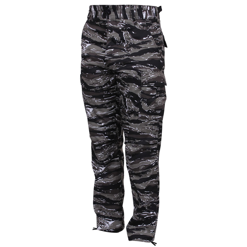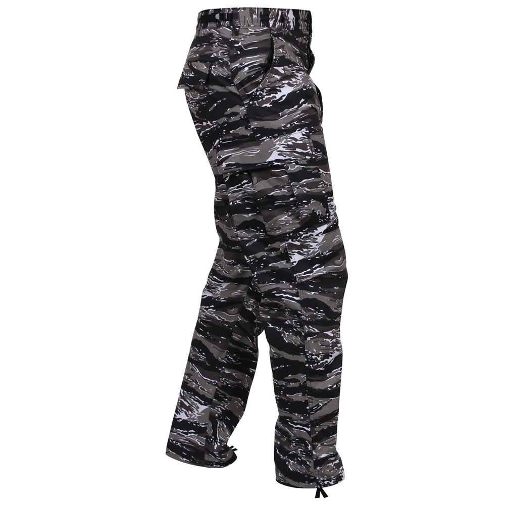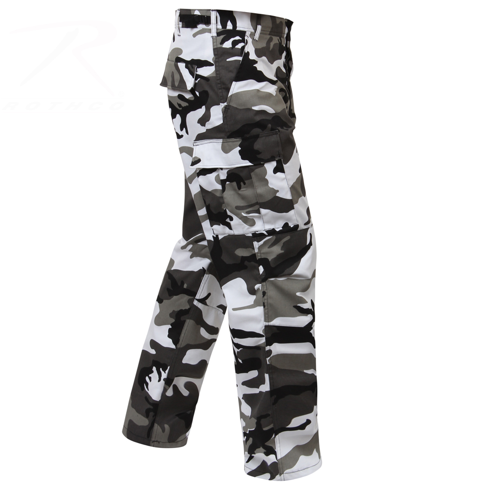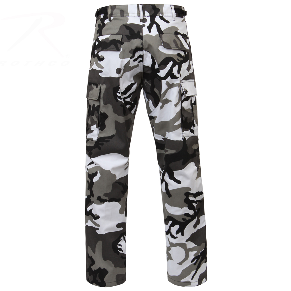 Color Camo Tactical BDU Pants, which are available in a variety of camouflage patterns including ultraviolet camo, red camo, and sky blue camo. In the street or the field, woven Color Camo BDU Pants are designed to withstand the wear and tear with double stitched seams and long-lasting 55% cotton / 45% polyester material. The camouflage pants featurecombat-tested reinforced seat and knees for unparalleled resiliency. Modeled after the U.S. military’s standard-issue battle dress uniform (BDU), the camo pants include 6 versatile pockets, including two front slash pockets, two large button down pleated bellow cargo pockets, and two button down back pockets. Equipped with adjustable waist tabs, the camo fatigues can be altered for the perfect fit. Constructed with the classic military button fly and drawstring ankle ties, the pants can perfectly cinch around your ankle or blouse over your boot. Whether for firearm training, paintball / airsoft, skateboarding, or just looking for a military-style look,Camo BDU Pants are the optimal choice.