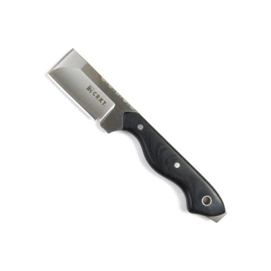 When Jon Graham of Graham Knives in Cleveland, Tennessee, developed the custom Graham Razel™ in 2001, most knife blades came to a single point. Not the Razel. It's a cross between a chisel and a razor with a knife handle. The result gives two useful Razor-Sharp edges, one for pushing or tapping, and the other for precise cutting. You also get two strong blade points. The Jon Graham has been very successful with their custom versions in a variety of sizes and styles. The CRKT production Razel models follow the Graham concept faithfully, with very thick full-tang blades of premium 9Cr18MoV (similar to 440C) stainless steel in a brushed finish, hand-contoured resin impregnated fiber handles, and custom-fitted Kydex® sheaths. How are mechanics, carpenters, farmers, and home craftsmen using their Razel models? The Grahams report: Scraping gaskets, removing paint and stickers. Chiseling to make reliefs, mortises and tenons. Prying tight-fitting parts. Cutting things like paracord, wire insulation, radiator hose, plastic ties and tubing. Taper reaming a hole with the twist of the wrist. Reaching into tight spaces and push cutting with the chisel edge. Opening feed bags and cutting through bales of hay. You name it, the Razel does it.