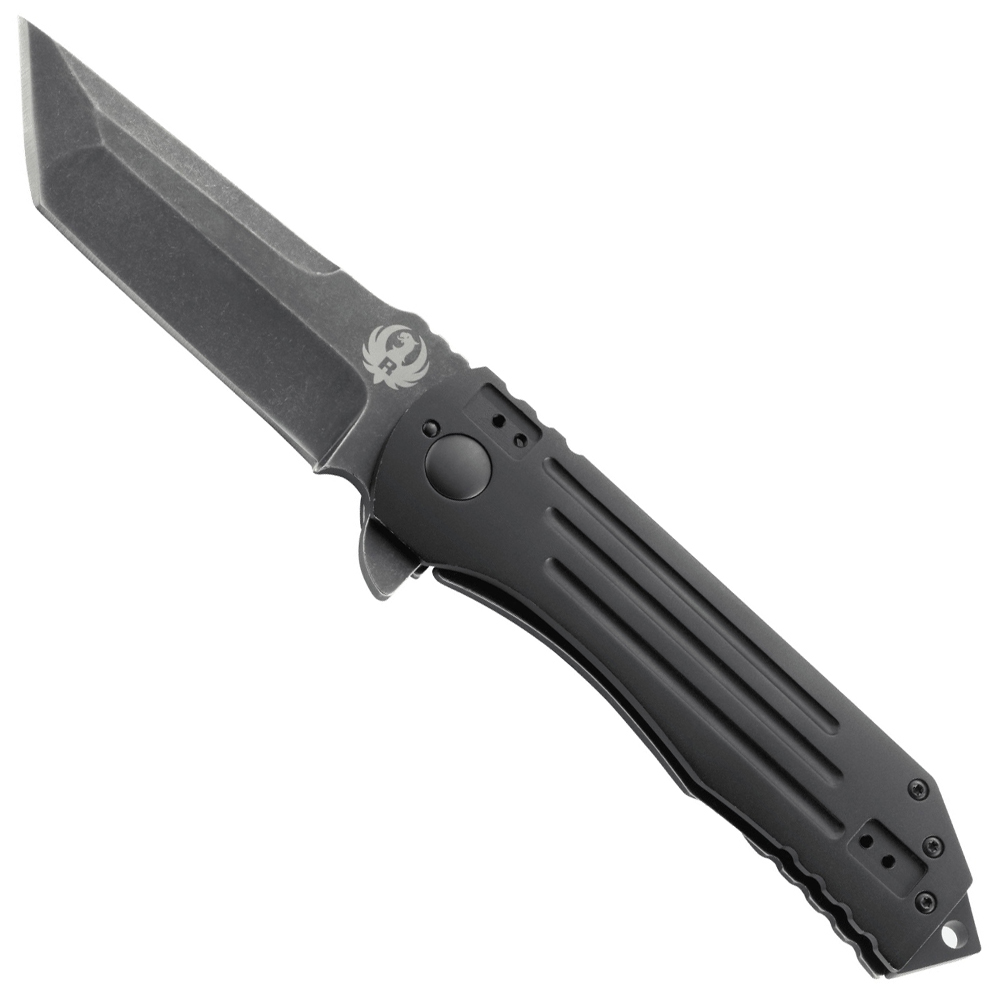 It takes 2 to tango, and the 2-Stage folder by CRKT and Ruger is the perfect partner. The sleek handle is ultra-tough anodized aluminum, built with a frame lock and stainless steel striking pommel. The black stonewashed tanto blade has a robust tip and plain edge, ideal for thrust cuts through tough material. A reversible four-position clip and lanyard hole allows the 2-Step to keep up wherever you go.
