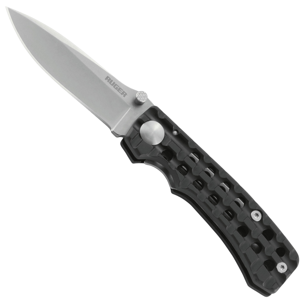 The compact Go-N-Heavy from CRKT and Ruger brings the same heavy duty performance as its big brother in a pocket friendly package. This impressive tactical knife is a collaboration between two companies and five master knifesmiths. The 3.5 inch blade has a drop point shape and plain edge for clean slicing. A stonewash finish and hard anodized aluminum handle give the knife a rugged complexion that hides nicks and scratches.