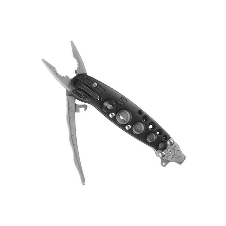 Launce Barber and Tom Stokes designed the patented* Zilla-Tool™ as part of our innovative I.D. Works™ line of tools. It really is the monster tool, with a comfortable ergonomic handle that lets you get a lot of work done. The pliers jaws are spring loaded, with a slight needle nose taper. They have both fine flat and circular toothed gripping surfaces. Near the base of the pliers, is a very useful wire cutter and also a notch near the handle for wire stripping. You can store the two screwdriver hex bits in the Zilla-Tool's handle reliefs. It also accepts other standard hex bits. To open the knife blade quickly, just press the little "flipper." It also acts as a blade guard when the blade is open. Metallic surfaces are bead-blast, while the Zilla-Tool's rugged scales are injection molded black glass filled nylon.
