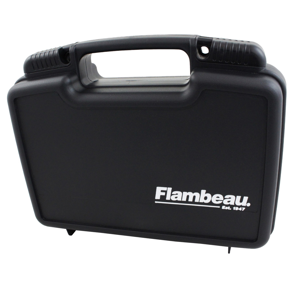 The Flambeau Safe Shot Pistol Case keeps your guns safe and secure for transportation and home storage. Built from durable polymer with a corugated-foam-lined compartment that can fit most revolveres, pistols, and spare magazines. The sliding latches are padlock compatible and comply with TSA airline safety requirements.