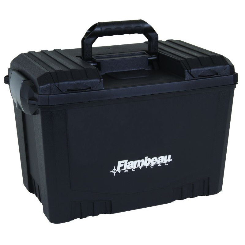 The Flambeau Sportsman's Dry Box provides waterproof storage for fishing tackle, tools, shooting equipment, and other tactical gear. It has a durable polymer construction with 360-degree rubber water-resistant gasket. This 18" model has a large inner compartment for long tools, as well as a removable tray, and a flip-top lid chamber. It has an easy-access OTC latch and is padlock compatible.