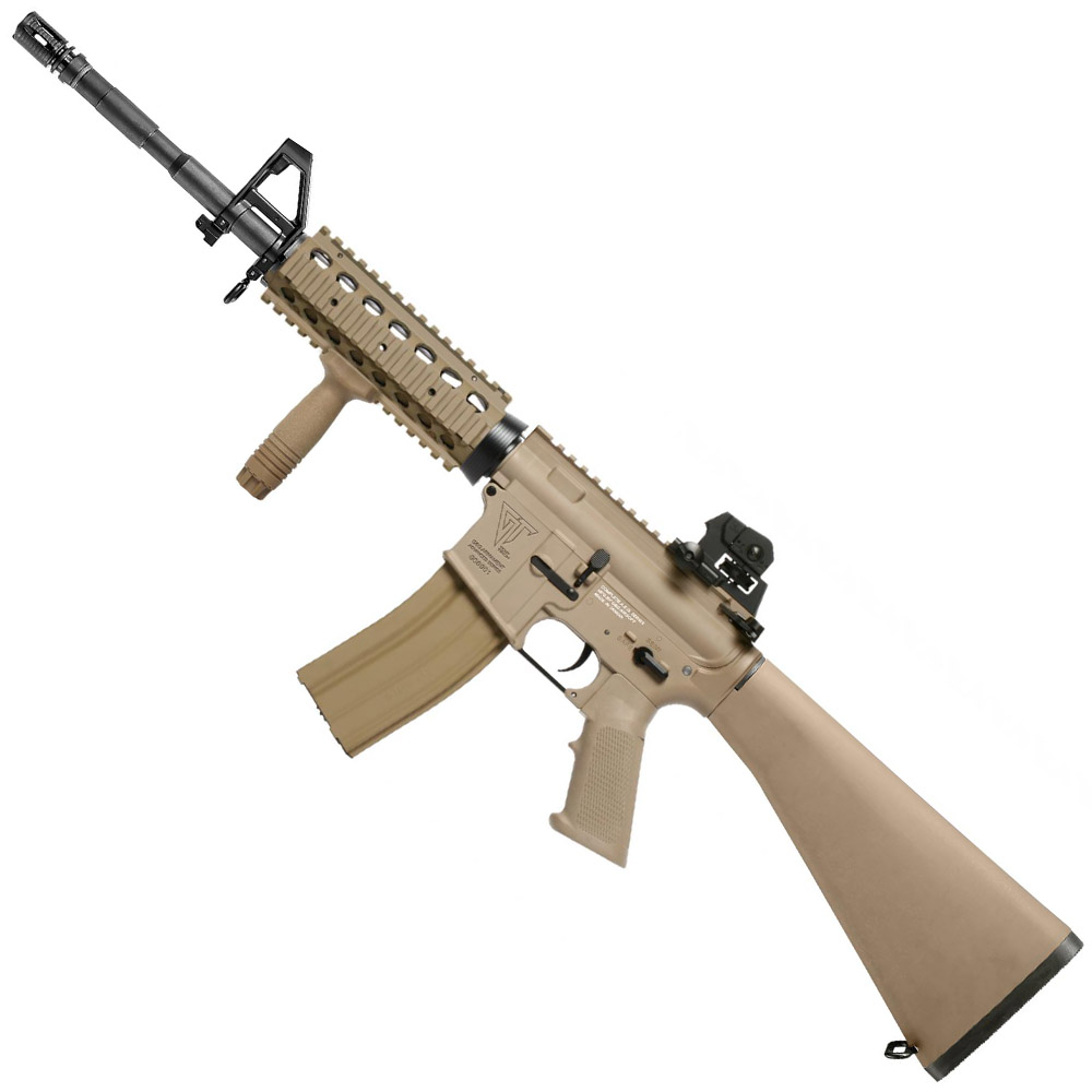 Gun down your competition with this top tier G&G TR16 R4 DST Electric Airsoft Rifle in your hands. The gun delivers added realism thanks to its metal body and high powered blowback system. Its versatile rail system offers a variety of points for tactical attachments like scopes and grips. The tan colour is perfect camouflage in desert environments.