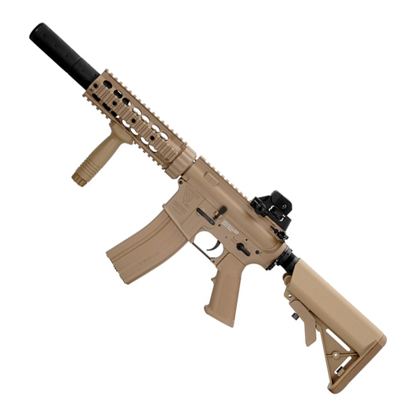 Take your airsoft experience to the next level with this G&G TR4 CQB-S AEG Rifle. This full-scale replica is complete with a full metal rail kit, an integrated mock suppressor, and a functional bolt catch. Like other G&G Top Tech guns, the TR4 CQB-S features durable 8mm sealed ball bearings and a specially designed gearbox shell to reduce internal stress. The 6-position crane stock is retractable and can be adjusted for a custom fit.