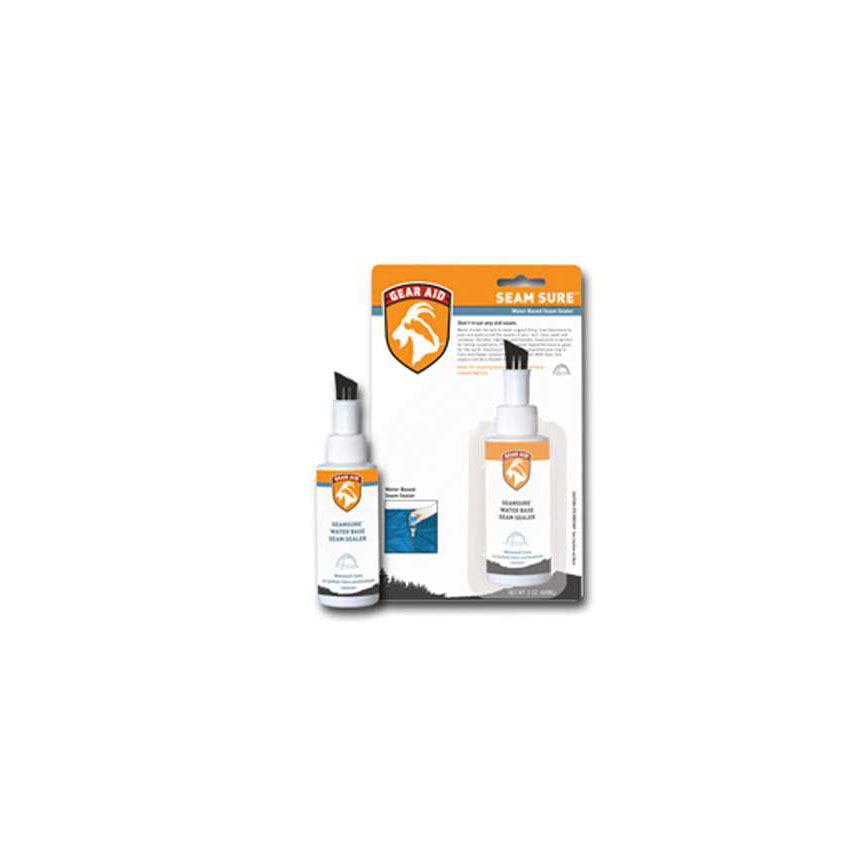 Use Seam Sure⢠Water Based Seam Sealer to seal and waterproof the seams of your tent, tarp, pack and rainwear. Durable, odorless and flexible, Seam Sure is perfect for family-sized tents. Plus, its water-based formula is good for the earth. Ideal for sealing seams on polyurethane coated fabrics. Seam Sure flexes with the fabric insuring waterproofing even in cold temperatures and high wind conditions. Our unique brush applicator allows the user to easily apply Seam Sure into needle holes, sewn joints, corners and under lap-felled and folded seams. Seam Sure is part of a comprehensive line of Care and Repair products from Gear Aid. With Gear Aid, anyone can be a master of gear repair.