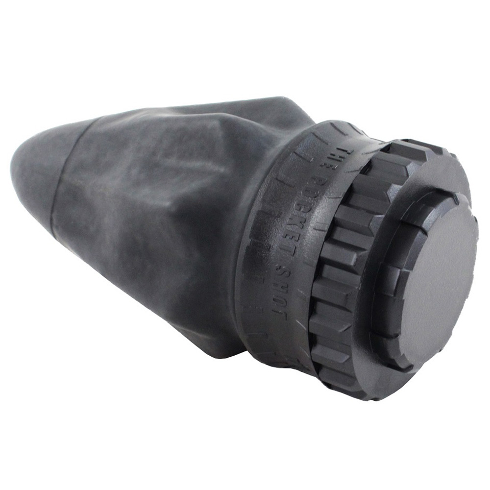 The slingshot has evolved! The Pocket Shot is a projectile launcher with an innovative design that replaces the archaic elastic band system with a bungee pouch that fires two to three times faster. In place of a handle, the Pocket Shot uses a durable polymer ring that eliminates the risk of misfiring into your own hand. It can fire a wide range of ammunition and is perfect for small game hunting, target practice, airsoft and paintball games. This starter kit comes with two pouches: the standard pouch fires at 300 FPS and the pro pouch fires up to 350 FPS. When not in use, the Pocket Shot folds up small enough to fit in your pocket and the included cap allows you to store ammo inside.