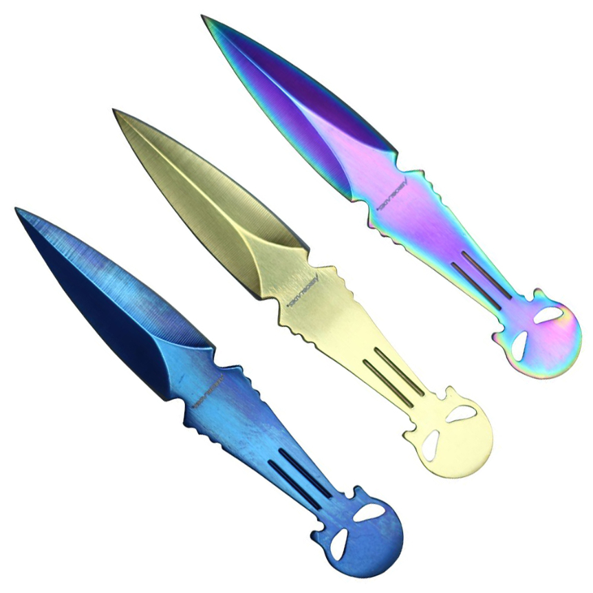 Super sharp, tip point blade. Stainless Steel material creates a lifetime of target practice & endurance. As you look at the spine of the blade it features a false upper edge and drop-point profile. These high-impact throwing knives will pierce straight through an aluminum can. A middle-balanced blade, making a powerful impact with precision and speed at every throw. Attach a tassel to tune these knives to your throwing style. In addition, comes with a nylon throwing knife sheath that attaches to your belt easily ideal for outdoor adventures. Superior craftsmanship provides an ergonomic design and smooth functionality.