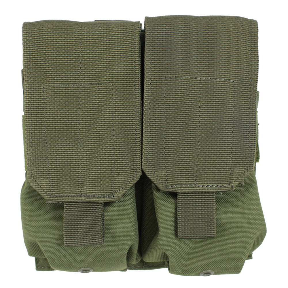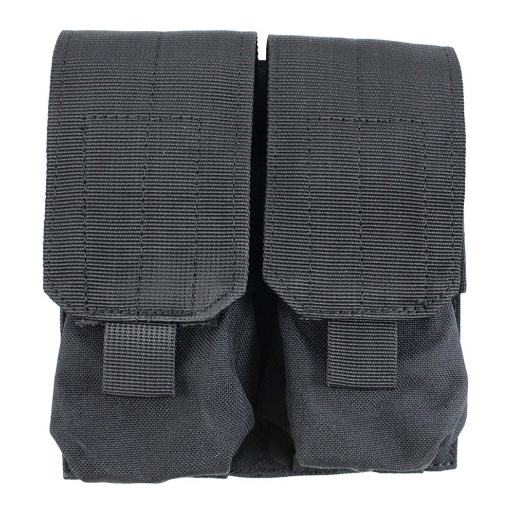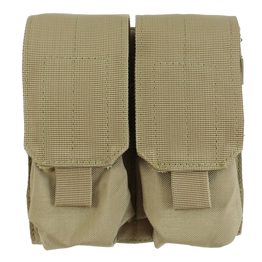 This Raven X dual magazine pouch can hold up to four M4 or M16 magazines. The pull tab covers are height-adjustable and use hook and loop fasteners. Snap button PALS straps on the back allow the pouch to be attached to MOLLE compatible gear.