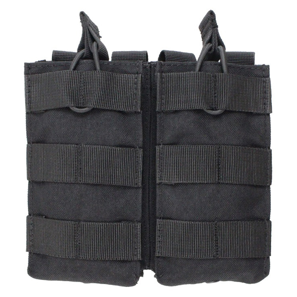This Raven X dual magazine pouch can hold two M4 or M16 magazines. The bungee cord open top design allows for instant access and fast reloading. Snap button PALS straps on the back allow the pouch to be attached to MOLLE compatible gear.