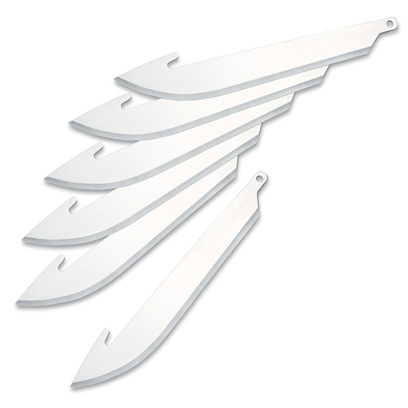 The Razor-Lite EDC Replacement Blades will keep your knives sharp all the time. Simply push the side button to release the blade on your knife and change out a dull blade for a sharp one. This set contains 6 420J2 stainless steel blades, measuring 89 mm (3.5 inches) in length. Compatible with a variety of Outdoor Edge Company knives.