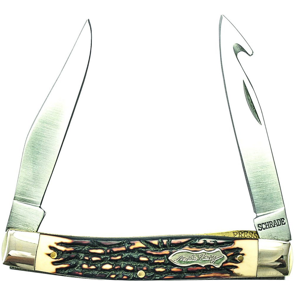 Schrade Uncle Henry Pro Skinner 2 Blade Muskrat Knife with Clip Point and Clip Point with Gut Hook Blades