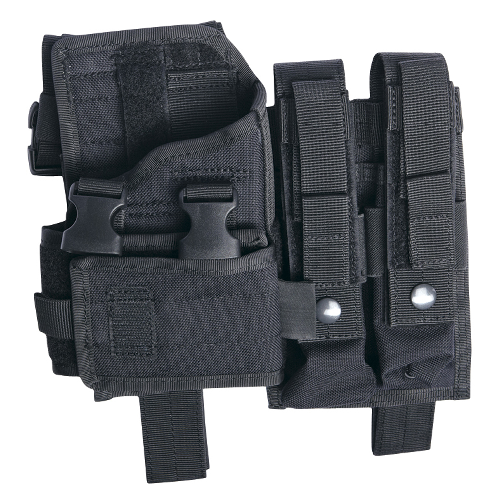 Your side arms are always at your side with the Strike Systems SMG Thigh Holster. This adjustable rig is uniquely designed to fit large pistols and SMGs with optical accessories. Dual magazine pouches are built in to keep your spare ammo at the ready. The entire body is constructed from heavy-duty nylon and covered in MOLLE webbing to attach modular pouches.