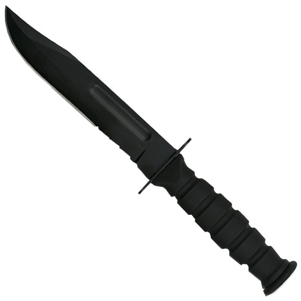 Here's a survival knife that won't weigh you down. The small-scale Survivor Fixed Blade has all the power and capability of a large tactical knife with the convenient size of a pocket folder. With a covert black coating finish and nylon belt sheath, it can go completely undetected in your everyday carry. The stainless steel clip point blade has a combo-serrated edge, perfect for outdoor use and survival tactics.