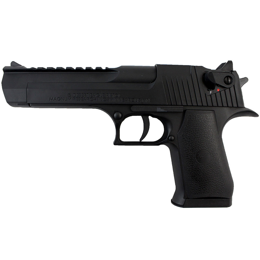 As THE FIRST .177 caliber BLOWBACK AIR PISTOL, the Desert Eagle is a big, weighty air pistol designed in the likeness of the real Desert Eagle by Magnum Research, Inc. Usable by both left- and right-handers this air gun has built-in Picatinny rails for mounting various accessories such as tactical lights and electronic sights. This Desert Eagle air pistol is powered by a 12g CO2 cylinder that inserts in the bottom of the grip. The slide opens at the push of a lever to reveal an 8-shot rotary magazine. Enjoy the big BLOWBACK action of the Desert Eagle Air Gun. Umarex 2257001