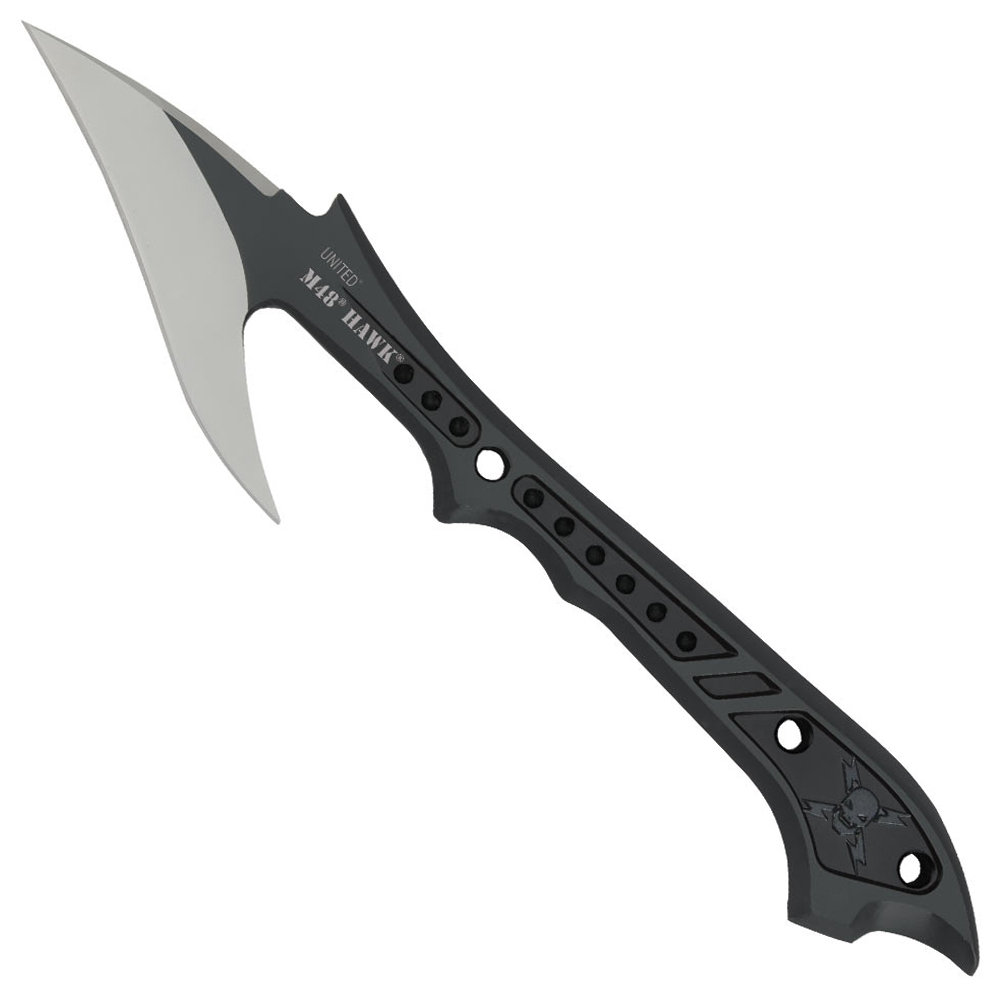 This M48 Hawk Harpoon knife features a razor-sharp blade that will slice through anything like butter, and a tip that will penetrate practically any target effortlessly. The wicked curve of this powerful blade allows it to be used for a variety of purposes. Lashing holes allow you to attach this harpoon knife to a wooden rod or stick, making an excellent harpoon or spear that can be used for hunting, fishing, and much more. Crafted of one solid piece of rock-hard AUS-6 stainless steel with a black oxide coating, this harpoon knife won't bend or break, and will stand up to tough, repeated use. The rubberized sheath will house this harpoon knife securely and protect you from its razor-sharp blade when not in use. Measures 8 ¼†overall.