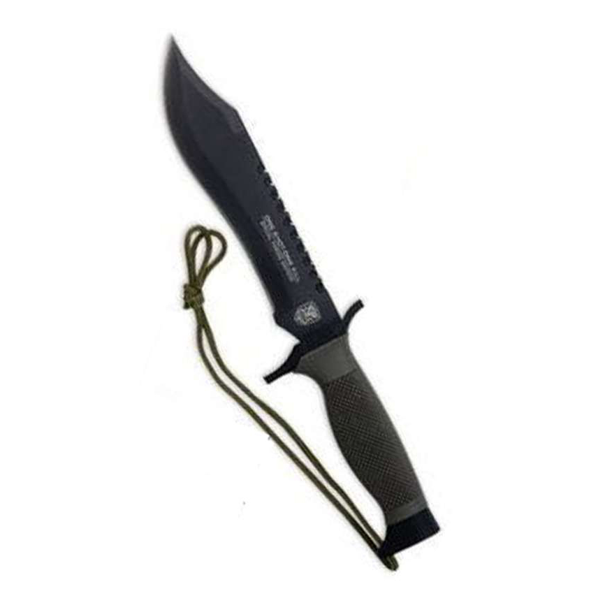 Don't take shots in the dark when you are speaking about survival. This One Shot: One Kill S.O.A. survival bowie is a knife you can always count on. A 7" stainless steel sawback blade features the S.O.A. emblem laser etched right into the blade. At 12" overall with a checkered ABS grip it's perfect for a sniper's bag. Includes fitted hard plastic S.O.A. sheath with nylon belt loop and fastening strap. Blade Material: Stainless steel Handle Material: ABSBlade Length: 7"Overall Length: 12" Sheath: Fitted hard plastic S.O.A. sheath with nylon belt loop
