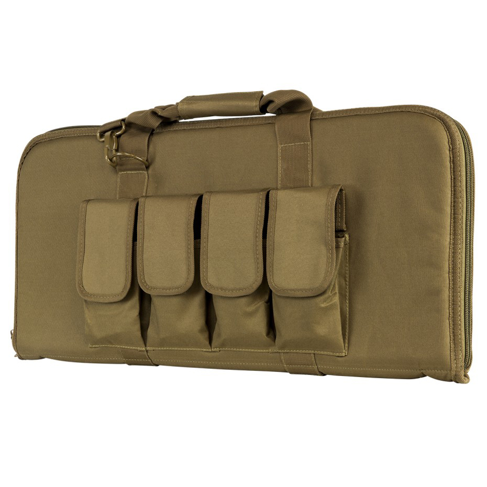 Designed to withstand brutal conditions, the NcSTAR Vism Carbine Pistol Case is made of durable PVC material. Both water and chemical resistant, this gun case will keep your weapon safe and dry on the go. Features include four exterior mag pouches, padded carry handle straps, and an adjustable shoulder strap. The case holds AK & AR style pistols, sub guns, AOW, and folding guns measuring under 711 mm (28 inches) in length.