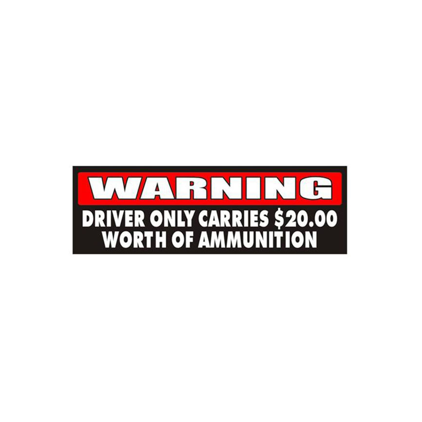 Warning Driver Carries 20 Ammunition Bumper Sticker