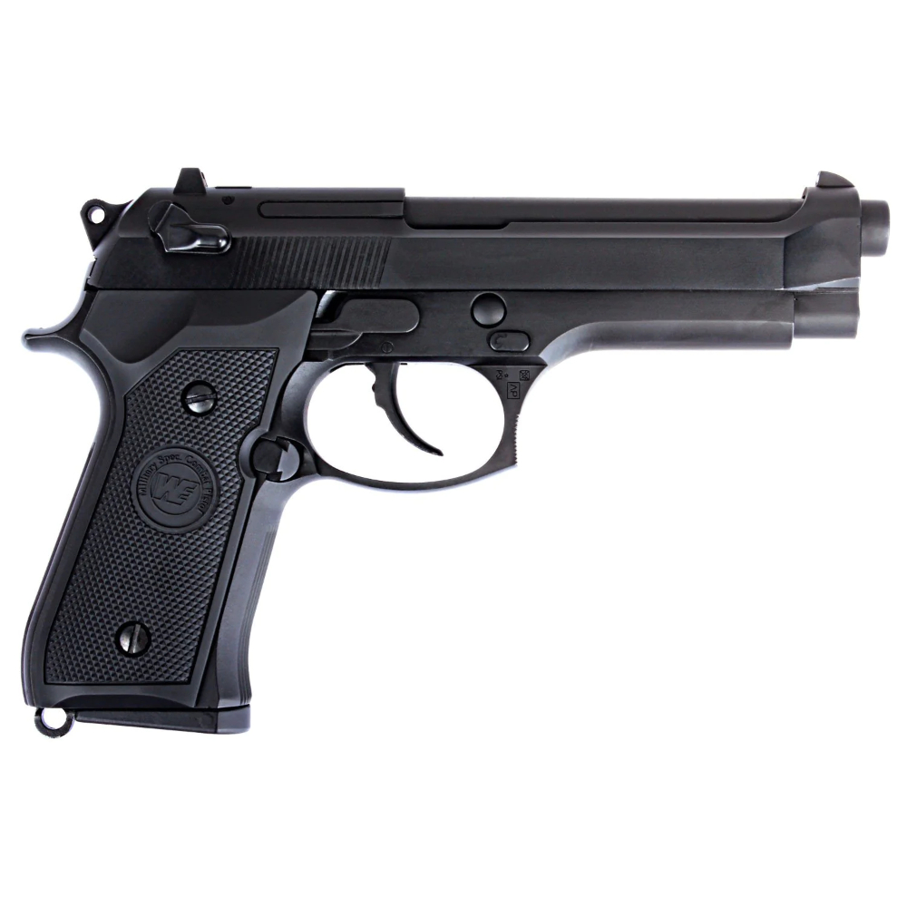This is the WE M9A1 New Generation, what should be a clone of the newer Tokyo Marui M9A1, but full-metal! Overall, it's a solid gun with smooth blowback action. Under the barrel is a railed frame for light or laser attachments and besides semi, this new variant is also operable in full-auto function. The best part about this pistol is definitely the light trigger pull outside of the box and the crisp blowback recoil feature also makes shooting experience a highly enjoyable one.