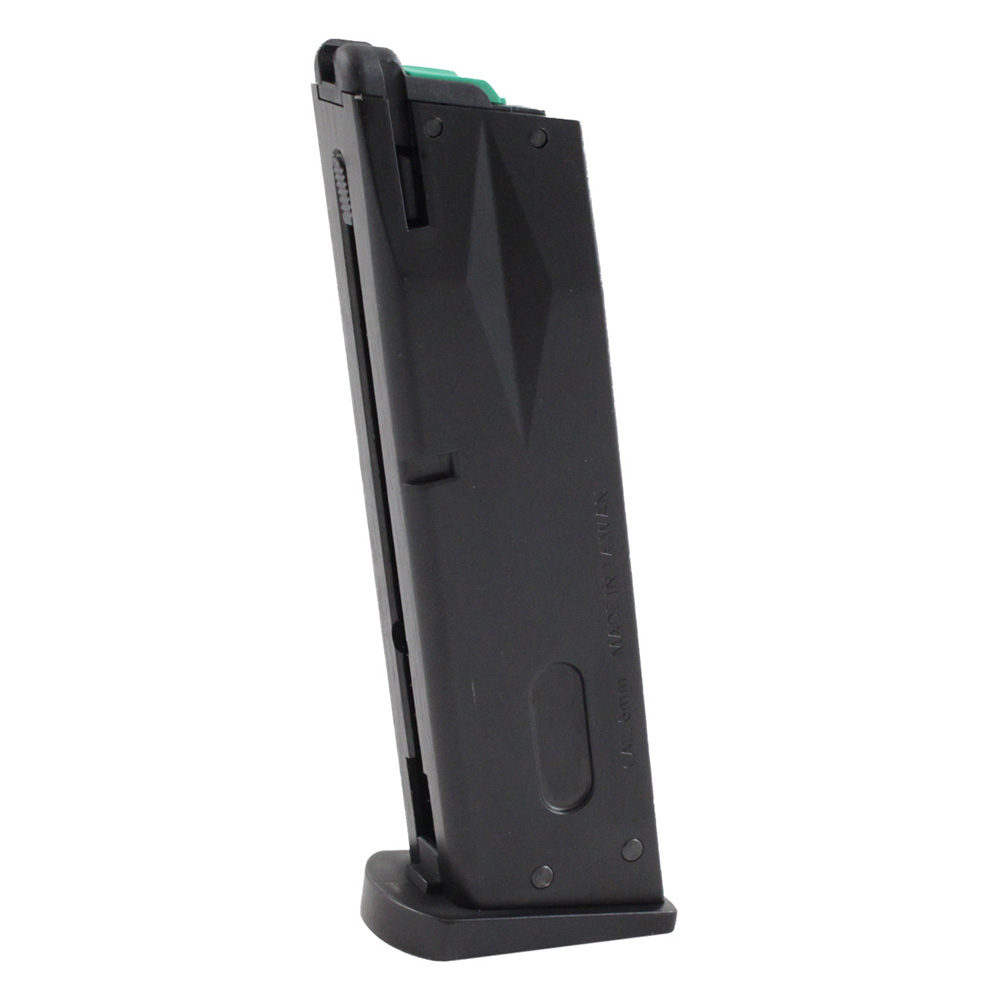 Keep your G&G GPM92 airsoft pistol locked and loaded with this spare magazine. It has been internally upgraded with G&G's latest safety technology. Fuel efficiency has been improved with a metal micro-filter that stops any liquidized green gas from passing through the gun. A collapsible safety valve has also been installed in case the gas tank becomes over-pressurized. It can hold up to 27 rounds.